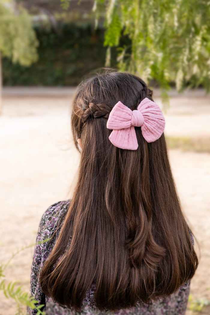 3) Pinza tipo pico de pato (o cocodrilo) (en este caso siemre recomiendo recoger primero el pelo con una gomita invisible debajo para que no se mueva el lazo)