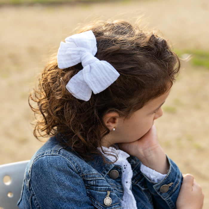 1) Con banda elástica 100% nylon, talla única ideal para bebés porque no se clavan en la nuca, pero se adaptan a cualquier edad.